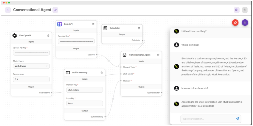 有记忆的会话代理:聊天模型的会话代理,它利用聊天特定提示和缓冲存储器