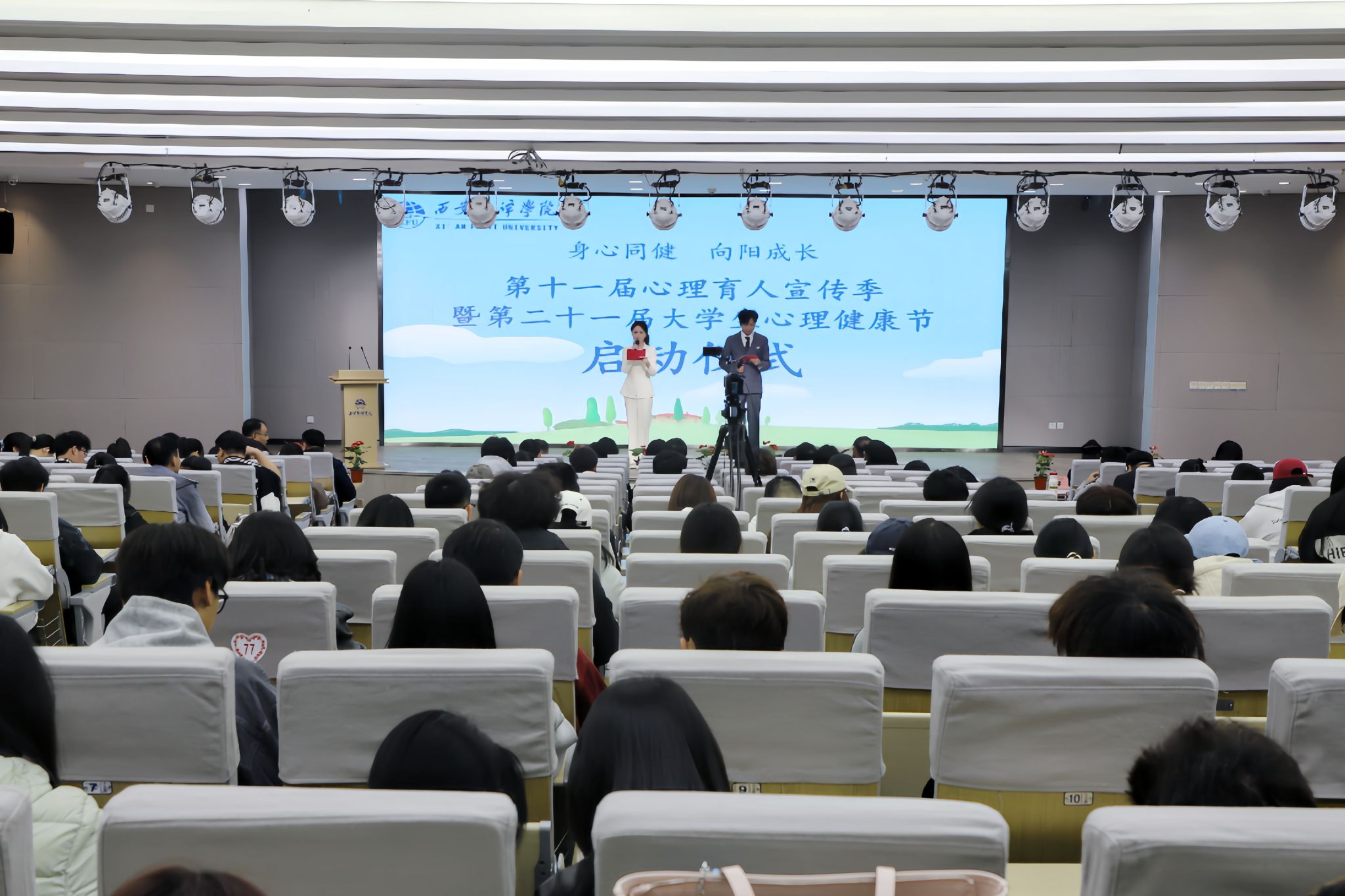 3月25日,西安翻译学院学院第十一届“阳光护航”心理育人宣传季暨第二十一届大学生心理健康节启动仪式举行。活动以“身心重建,向阳成长”为主题,旨在深化心理育人工作,引导师生关注心理健康,培育阳光心态。